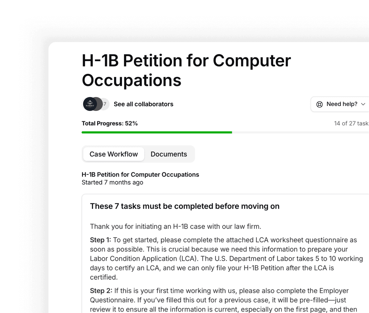 "We partnered closely with the Glade team to streamline workflows, improve efficiency, and enhance the client experience throughout the petition-filing process. Their efforts have resulted in the team consistently filing 16+ cases per week."