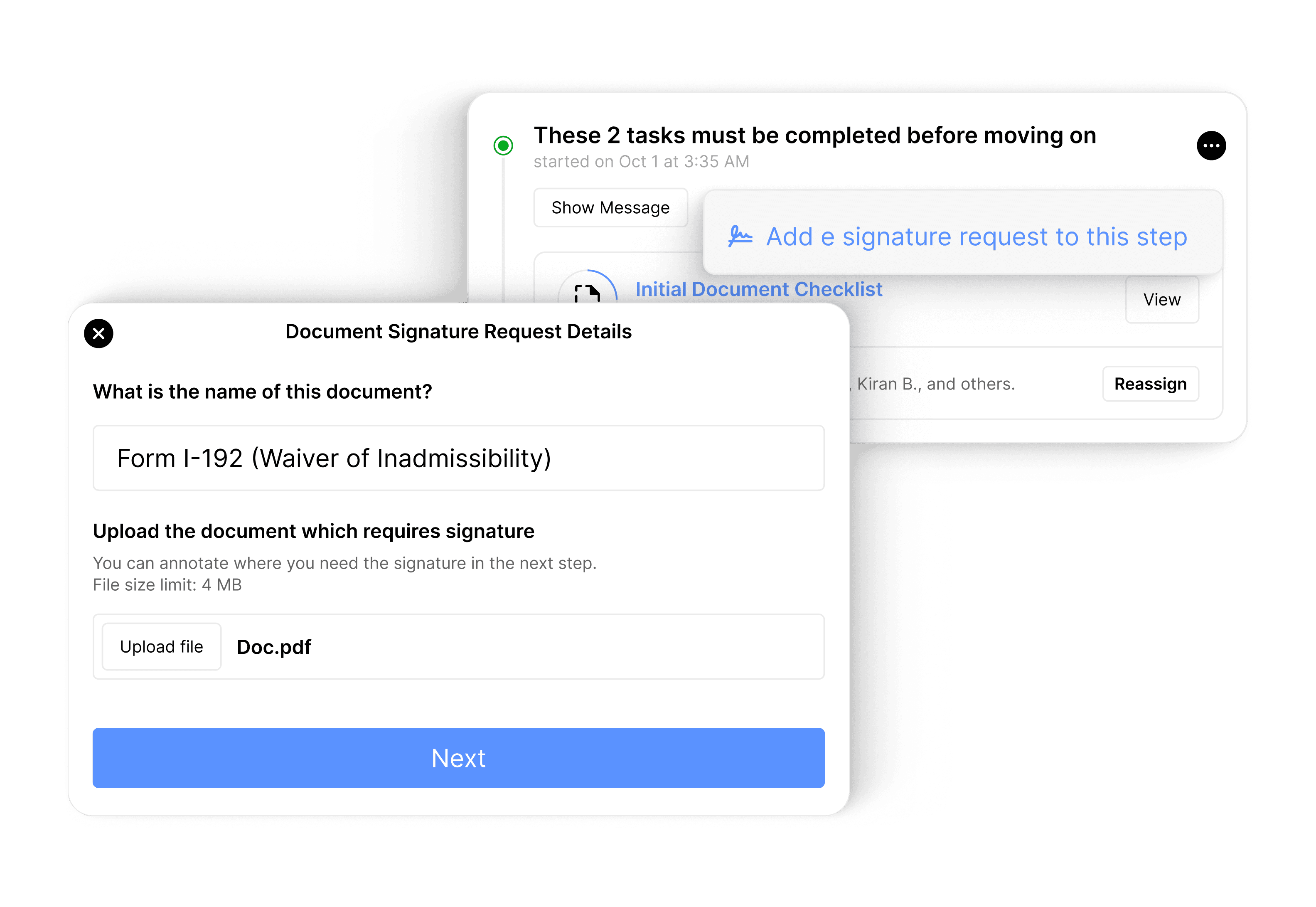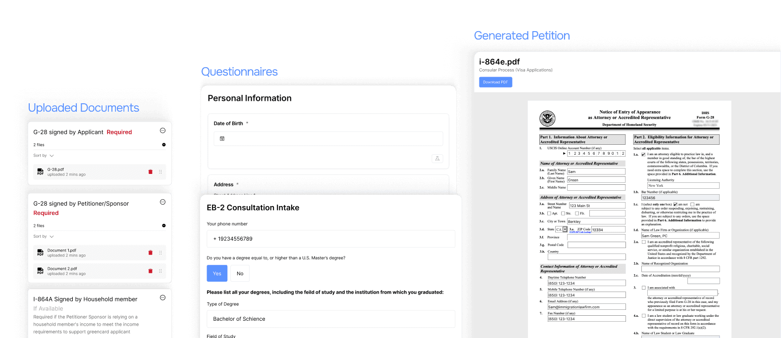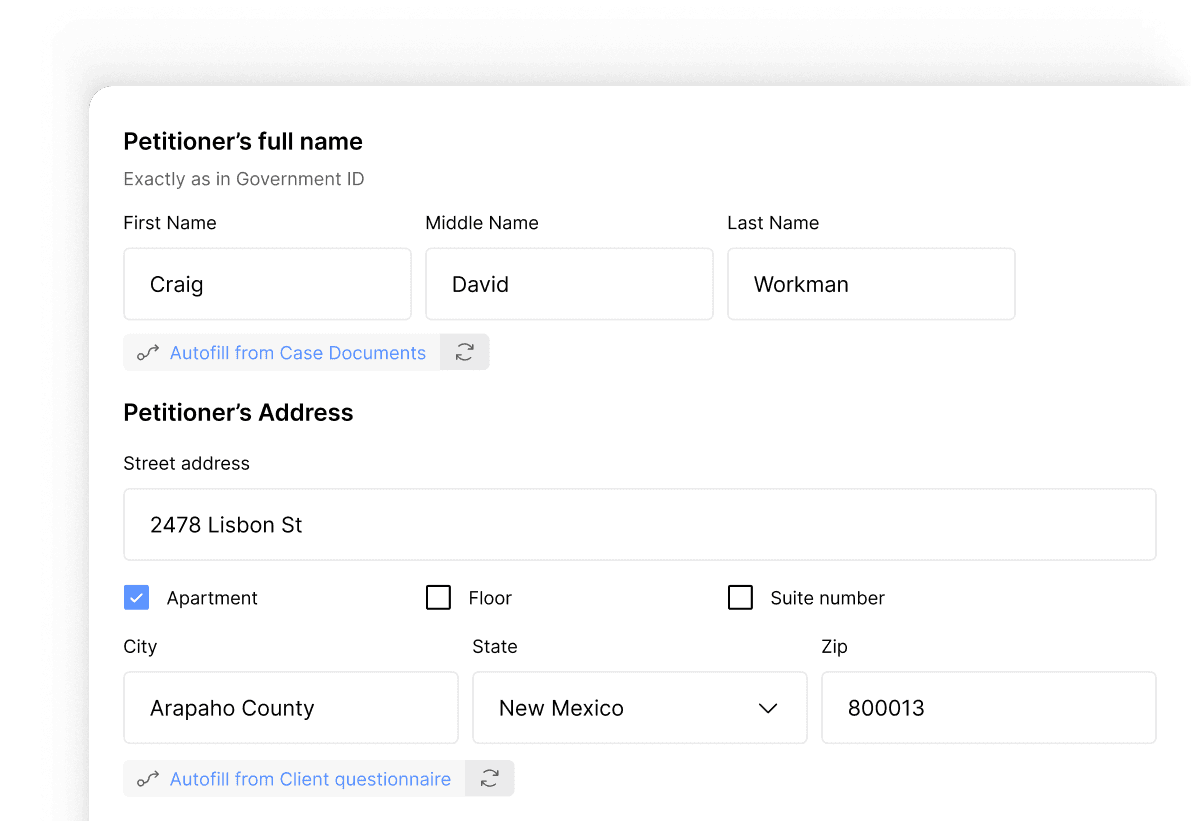 Final petition PDFs generated quickly for client review and signing