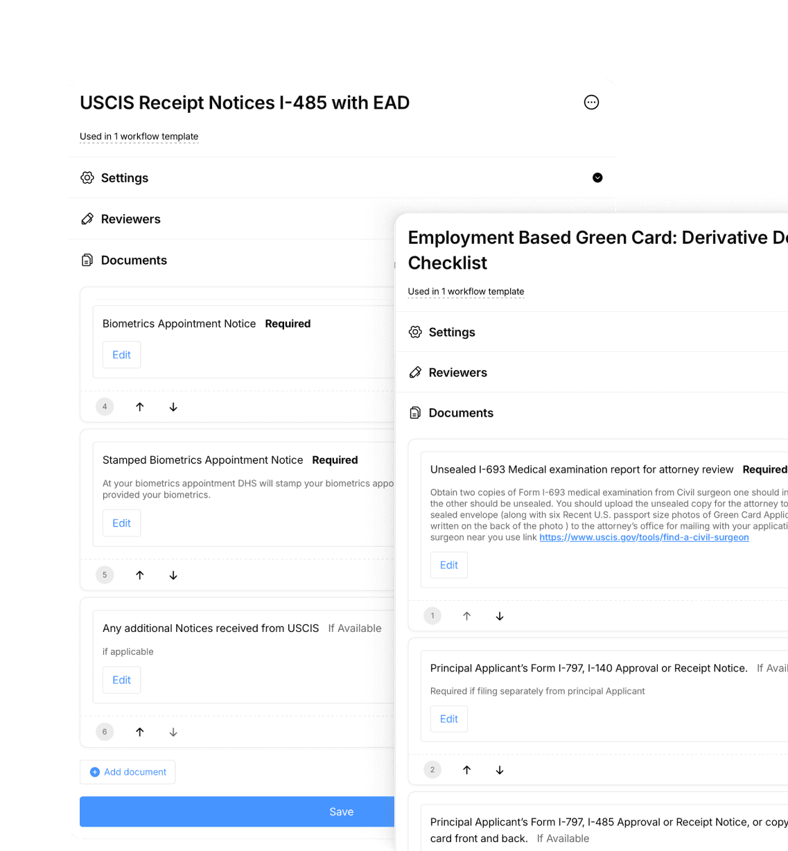 Create custom document checklists and templates for your clients